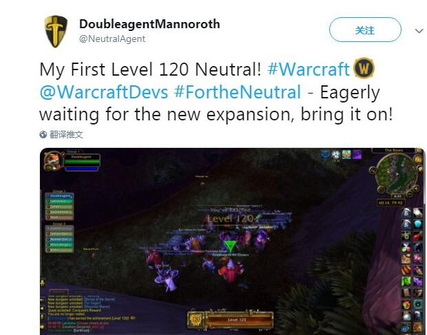 在8.0《争霸艾泽拉斯》中DoubleagentMannoroth也依旧继续保持的自己的中立属性,仍旧只依靠采药和采矿升级,而就在前几天他终于从110级升至了120满级,这次他一共花费了74天。