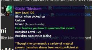 除了装备之外,最重磅的曝光就是吉安娜掉落的坐骑了,不是吉安娜的迅捷缰绳,而是是水元素坐骑,这个坐骑给了玩家无限的遐想,那么作为联盟的吉安娜粉丝,会不会为了这款坐骑去对抗吉安娜呢?相信一定会,还记得决战奥格瑞玛的时候,很多部落玩家表示永远支持小吼,最终却屈服在了獠牙肩膀之下,至今依然在一遍一遍的杀小吼。