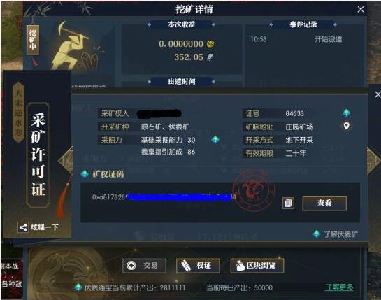没办法,所以我们只能是公布了伏羲通宝的区块链浏览器,来证明我们确实是货真价实的区块链技术。通过这个区块链浏览器,现在链上的所有信息都对大家开放了,从区块链智能合约上生成的每一枚伏羲通宝的来源和去向都可以被查到。每一位大宋矿主,都可以通过点击游戏内挖矿界的“区块浏览”按钮,前往这个区块链浏览器。或者点击证,查看自己的区块链地址。
