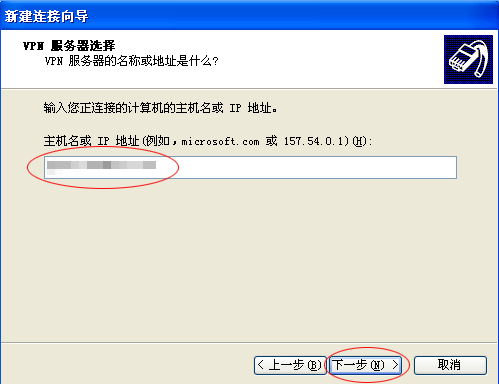 在主机名或IP地址填入“服务器地址”点击“下一步”点击“完成”