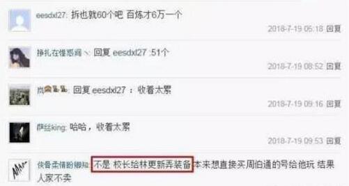 自从王校长的加入,逆水寒这款游戏也迅速的火了起来,熟悉王校长的人都知道,只有林更新才是真爱,网红都是小菜,近日王校长也是想为林妃弄一个号,盯上了土豪周伯通的账号,结果被拒绝了,开始了大肆收购百炼武器!27加速器表示简直豪上天!